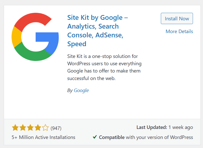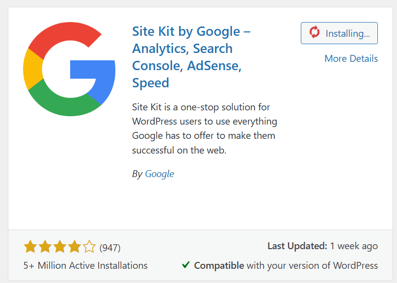 Install Google Site Kit into WordPress