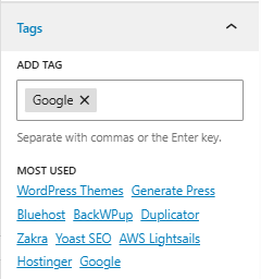 WordPress Posts allows you to add tags to each post.