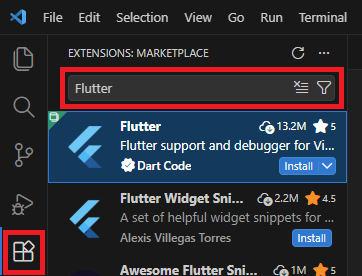 Once Visual Studio Code and Git are installed, install the Flutter extension in VS Code.